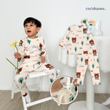 Cocohanee - Bears Shoulder Button Long Pajamas - Piyama Bayi dan Anak dengan Kancing di Bahu