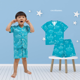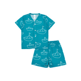 Cocohanee - Perahu Kertas Button Down Short Pajamas - Piyama Bayi dan Anak dengan Kancing Depan