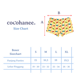 Set Boxer Anak Cocohanee yang terbuat dari Spandex dengan bahan yang ringan dan mudah menyerap keringat. Cocok untuk Anak yang memiliki kulit sensitif. Tersedia dari size S, M, L dan XL.
