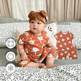Cocohanee - Brown Puppies Baby Short Shoulder Button Pajamas - Piyama Bayi dengan Kancing di Bahu