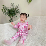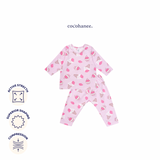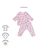 Cocohanee - Creamy Strawberry Baby Long Shoulder Button Pajamas - Piyama Bayi dengan Kancing di Bahu