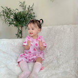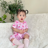 Cocohanee - Creamy Strawberry Baby Short Shoulder Button Pajamas - Piyama Bayi dengan Kancing di Bahu